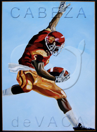 CABEZA de VACA is a self-taught artisan who was raised in a family of architects, has worked in California as a chef, pastry chef, interior designer, set-builder, home-builder as well as a production designer in Hollywood. He founded Exodus Productions, a production company that specialized in big events, such as the Governors Ball, the Super Bowl, and a variety of World Premiers. CABEZA de VACA apprenticed with world-renowned, Southern California muralist, Paul David Willner. After which, he embarked on his own painting career. His pieces hang on the walls of hundreds of noted private collectors, and has appeared in Sunset Magazine, Coast Magazine and Elysian Fields Quarterly. He is the current CEO of Cadiz Collaboration, the founder of Savage Noble Gallery collaboration, and a former lead-off hitter, centerfielder and pitcher. He is always looking to get on base.